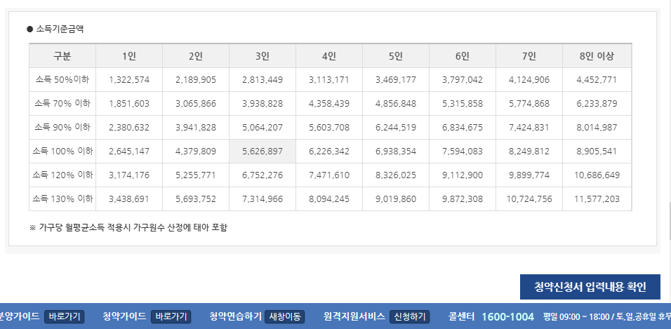 소득기준 120%이하 (배우자의 소득이 있는 경우 130%) |